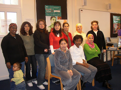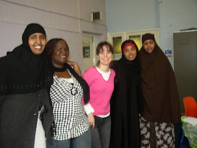 Aquí en la escuela Copenhagen, con alumnas de Somalia y Ghana…