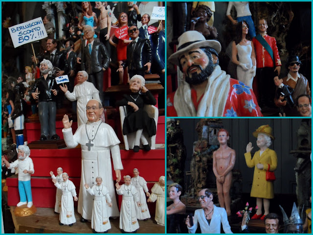 Napoli es la capital del pesebre “fatto a mano”, son obras de arte… y ademàs la ironia, porque ponen siempre a personajes actuales mezclados con los tradicionales!