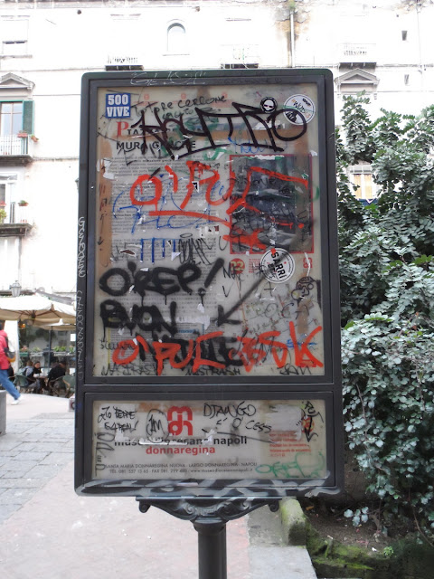 Hay mucho graffiti, muchos papeles pegados, se apreciaría todo mucho más, estoy segura, si el estado edilicio fuera tan bien cuidado como lo es el interior de dichas iglesias. Porque, por lo menos en Napoli, las apariencias de las iglesias engañan.