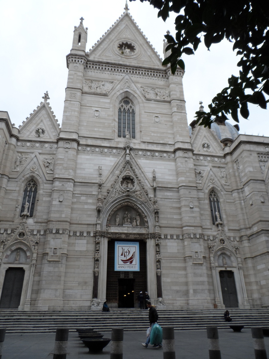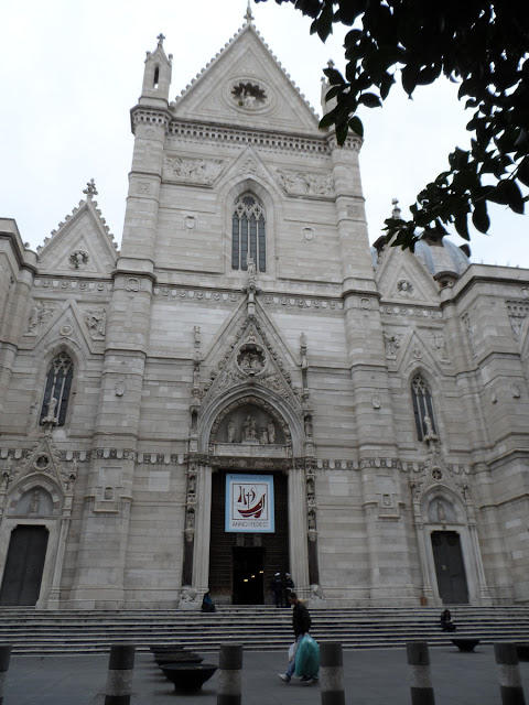 Seguimos caminando y llegamos al Duomo, una iglesia donde no se podía sacar fotos ni filmar, algo que nunca hago pero cómo me hubiese gustado hacerlo en esta oportunidad! No se imaginan lo bella que es por dentro, los frescos a los costados, en los cielo rasos y sobre todo la capilla de San Gennaro, el santo patrono de Nápoles.