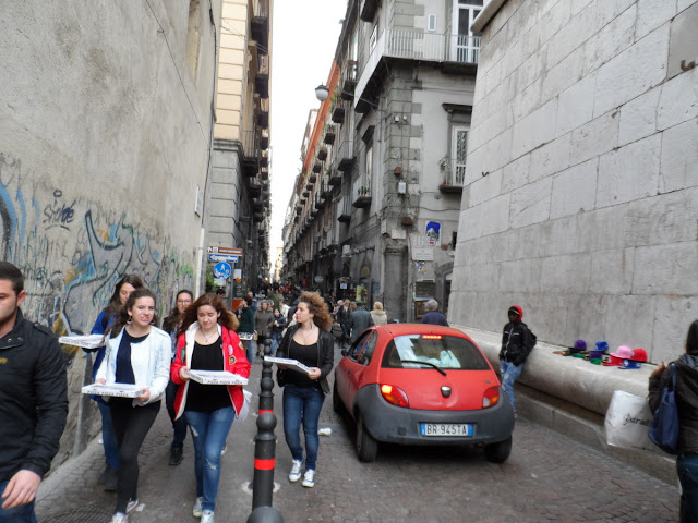 Napoli es ruidosa (todavía no tanto, me parece, como Buenos Aires), el tráfico es un lío de motitos, camionetas, autos y gente que camina por el medio de las diferentes callejuelas.