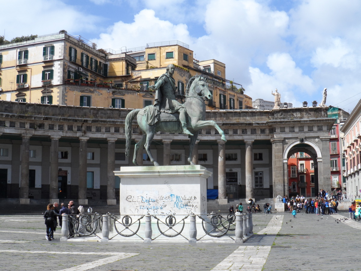 Pero aquí en el centro hay dos estatuas ecuestres, la de Carlos III de España y la de su hijo, Fernando I de Borbón- Dos Sicilias.