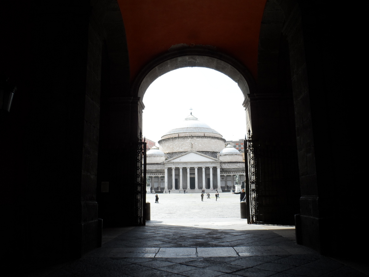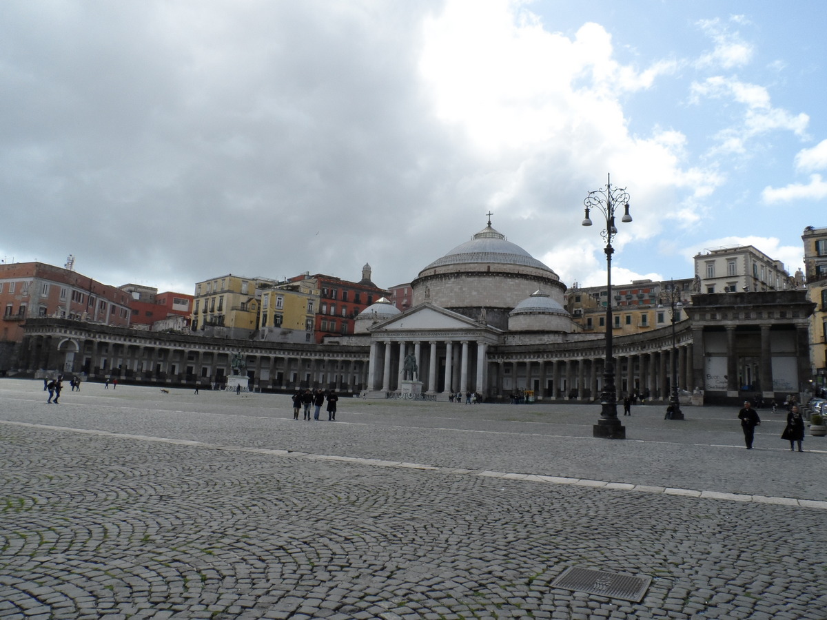 Y nos dirigimos para la Piazza Plebiscito, 25,000 metros cuadrados donde están ubicados, enfrentados entre sí, el Palacio Real y La Basílica de San Francisco de Paula.