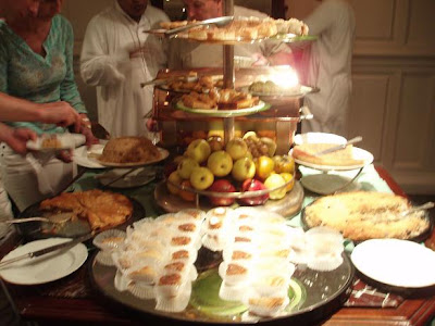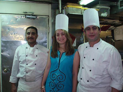 De repente de la cocina vinieron varios mozos y con Hassan, el maître al frente, tocando una especie de tamboril, y otro llevando una torta, se acercaron cantando a una mesa de una pareja. Pensábamos que era el cumpleaños de uno de ellos pero después nos enteramos que estaban de luna de miel y la canción que cantaban era una canción de amor del novio a la novia. Y les hicieron cortar la torta a los dos, como lo hacen los novios.