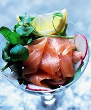 2. Mezclar el jugo de limón, el aceite y la ciboulette. Para servir, poner una lonja del salmón que se reservó antes en cada plato, ponerle encima algunas hojas de rabanito, agregarle un poco de la mousse. Y antes de servir, sazonarlo con la vinagreta de limón.
